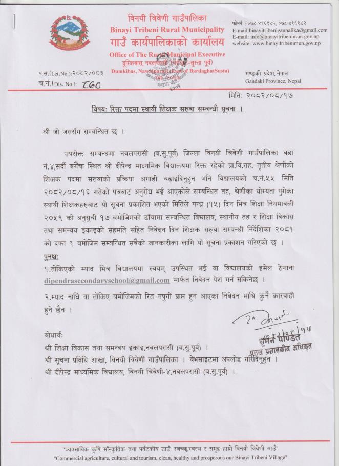 रिक्त पदमा स्थायी शिक्षक सरुवा सम्बन्धी सूचना ।