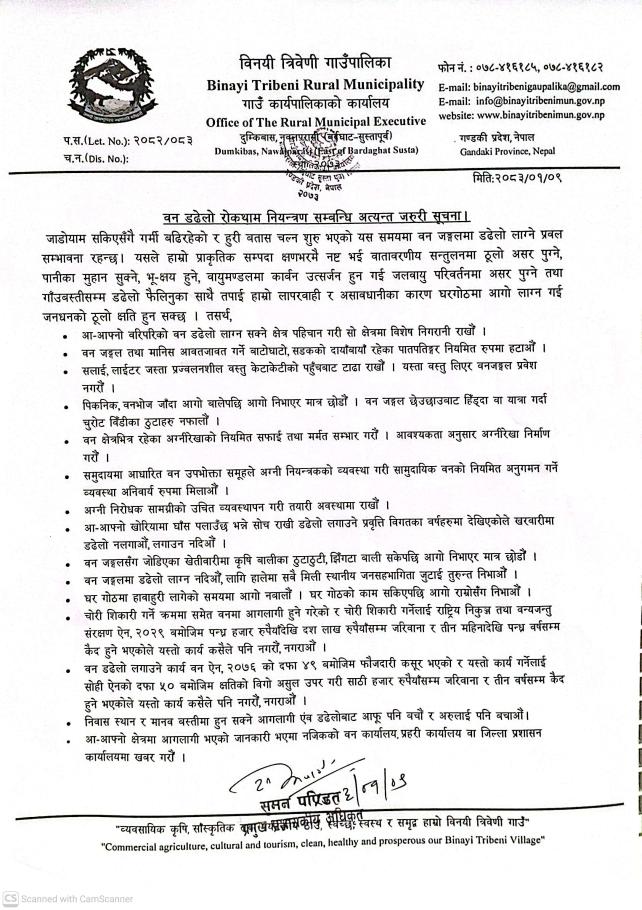 वन डढेलो रोकथाम नियन्त्रण सम्बन्धि अत्यन्त जरुरी सूचना I