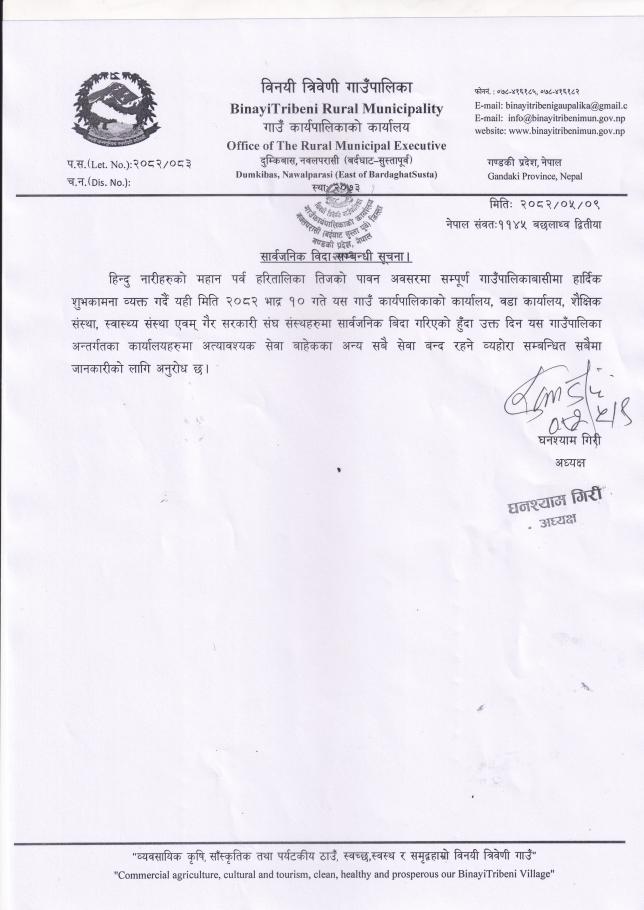 सार्वजनिक विदा सम्बन्धी सूचना ।