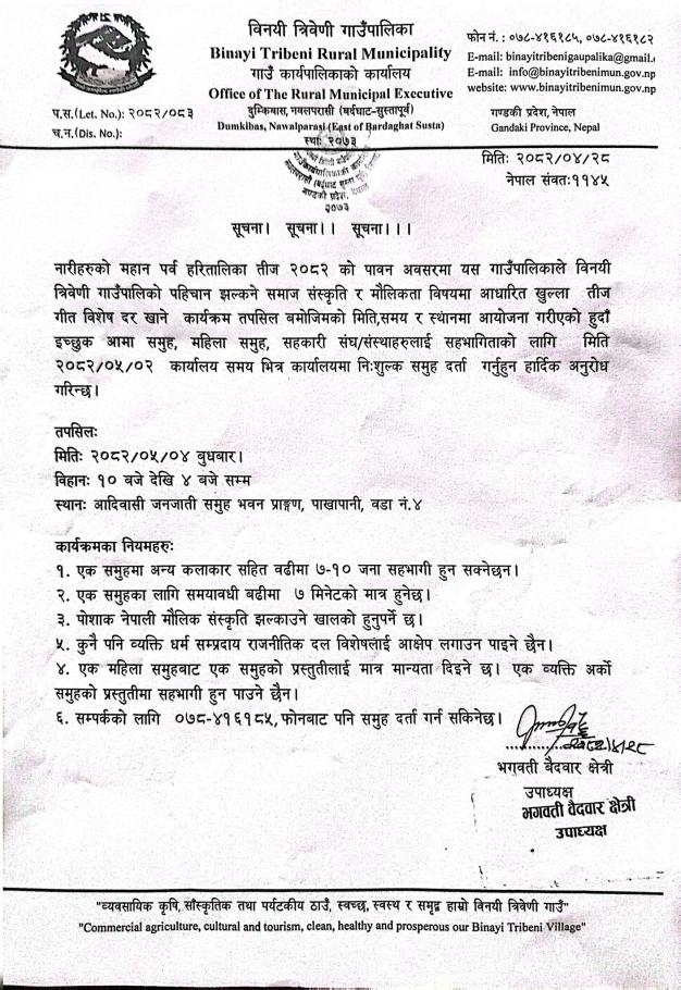 ठेगाना : दुम्किबास ,विनयी त्रिबेणी -२ नवलपरासी बर्दघाट सुस्ता पूर्व