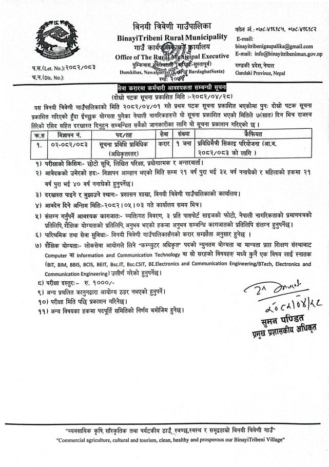 सेवा करारमा कर्मचारी आवश्यकता सम्बन्धी सूचना