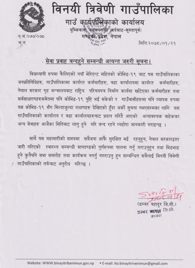 अत्यावश्यक बाहेकका अन्य सेवाहरु बन्द हुने सम्बन्धि सुचना !
