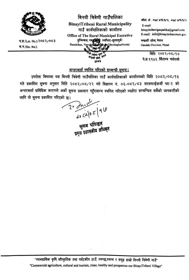 अन्तरवार्ता स्थगित गरिएको सम्बन्धी सूचना।