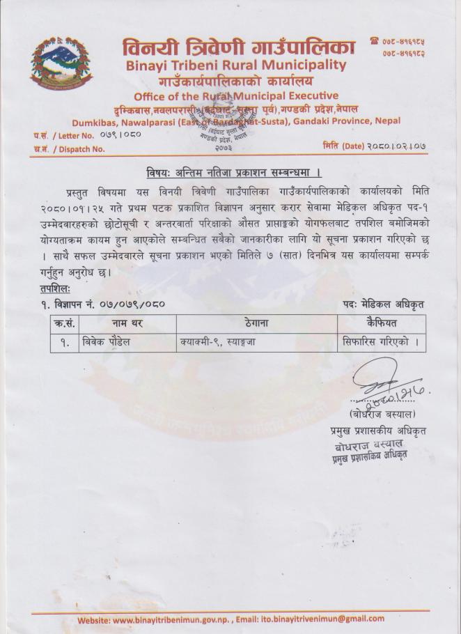 अन्तिम नतिजा प्रकाशन सम्बन्धमा