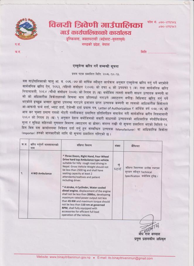 एम्बुलेन्स खरिद सम्बन्धि सुचना !