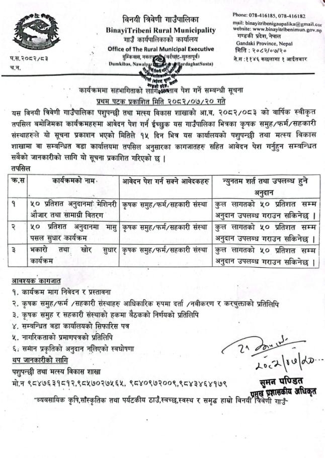 कार्यक्रममा सहभागिताको लागि प्रस्ताव पेश गर्ने सम्बन्धी सूचना ।