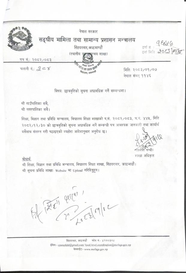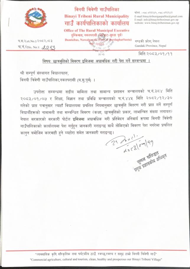 छात्रवृतिको विवरण इमिजमा अद्यावधिक गरी पेश गर्ने सम्बन्धमा ।