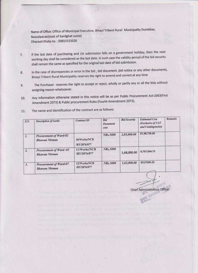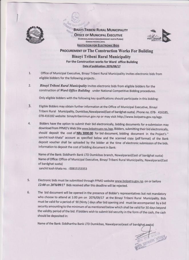 बाेलपत्र आहवान सम्बिन्ध सुचना !