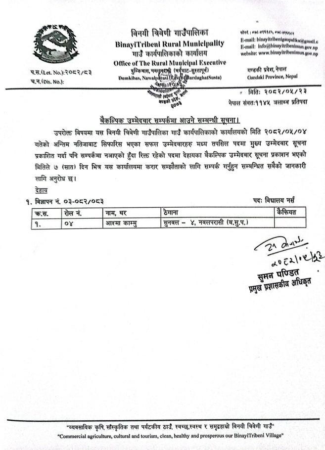 बैकल्पिक उम्मेदवार सम्पर्कमा आउने सम्बन्धी सूचना।