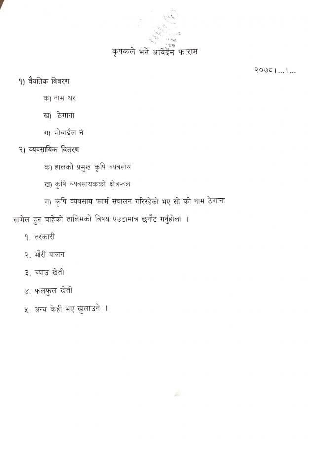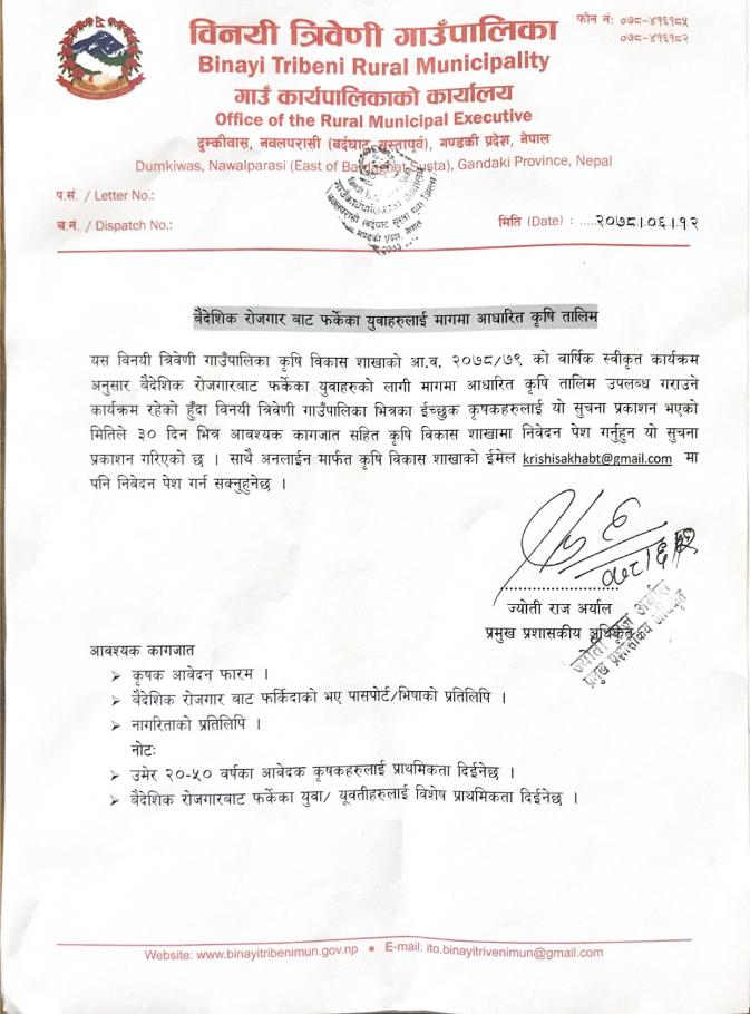 बैदेशिक रोजगार बाट फर्केका युबा हरुलाई माग मा आधारीत कृषि तालिम ।