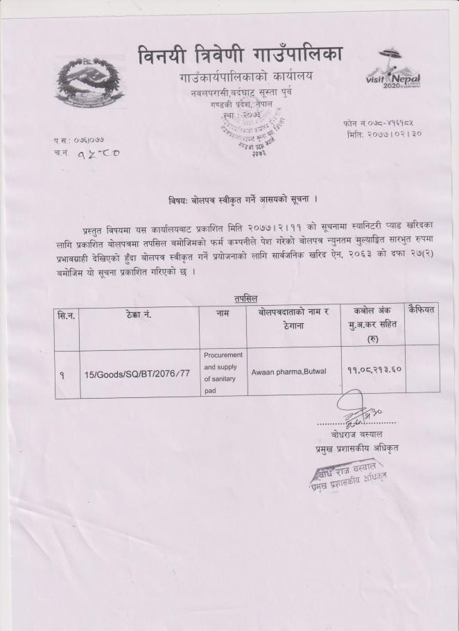 बोेलपत्र स्वीकृत गर्ने आशयकाे सुचना !