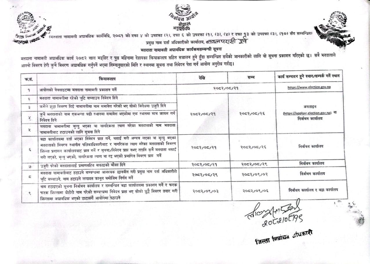 मतदाता नामावली अद्यावधिक कार्यक्रम सम्बन्धी सूचना