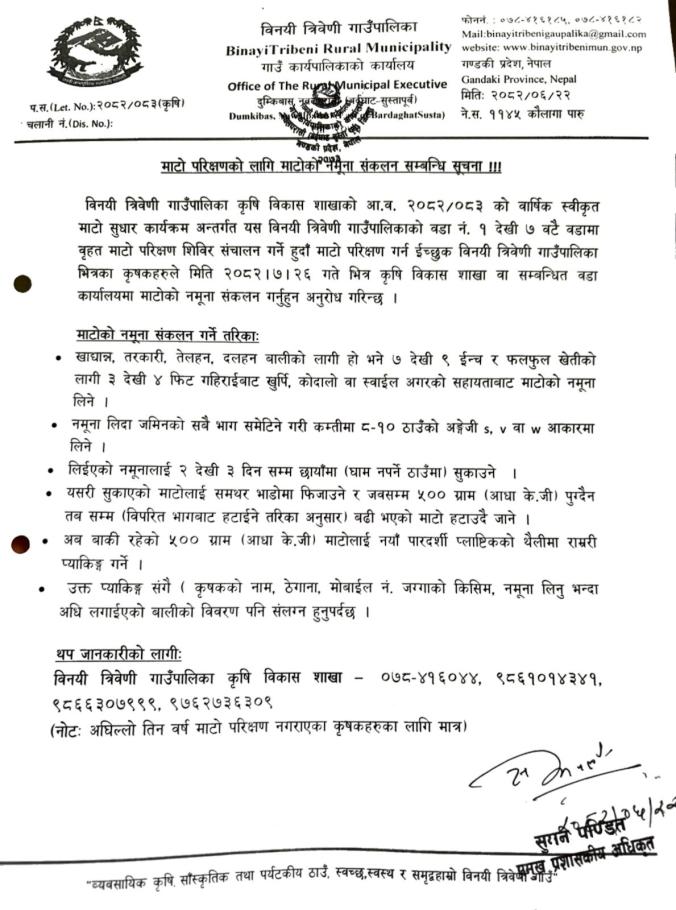 माटो परिक्षणको लागि माटोको 'नमूना संकलन सम्बन्धि सूचना !!!