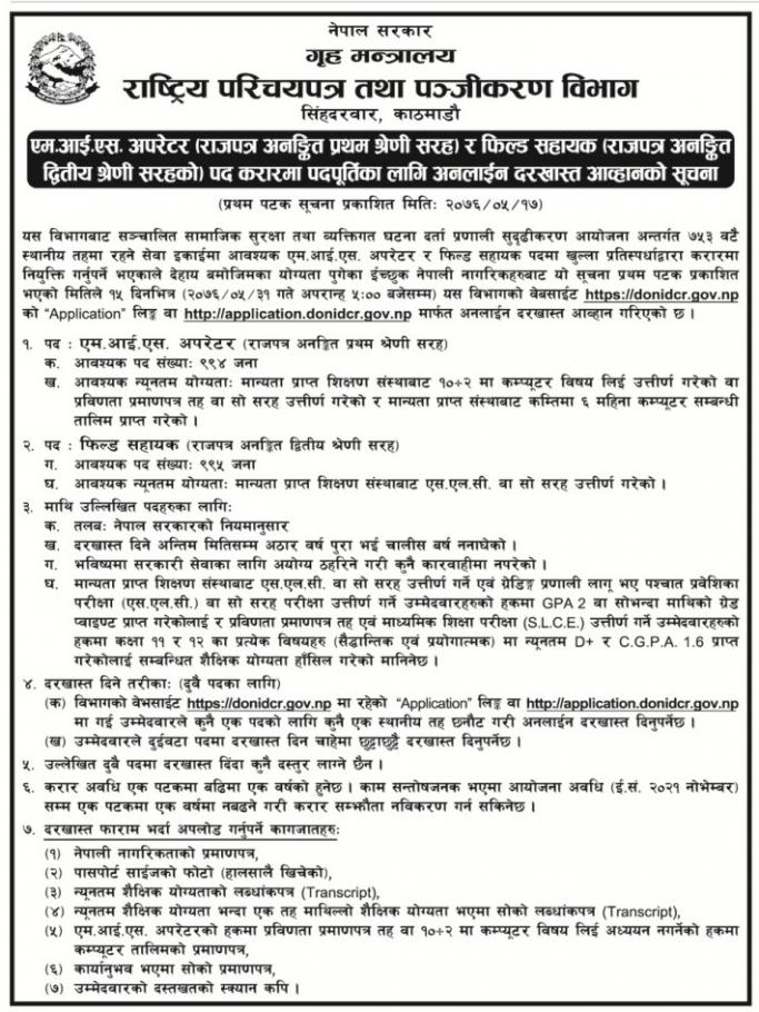 राष्ट्रिय परिचयपत्र तथा पन्जिकरण बिभागको सूचना !