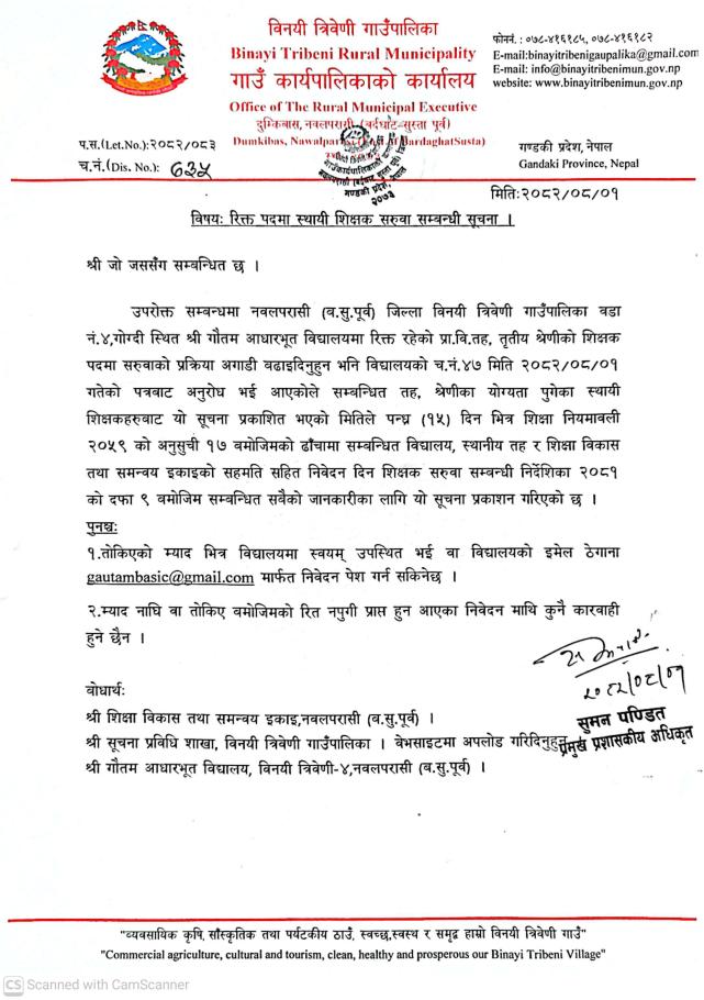 रिक्त पदमा स्थायी शिक्षक सरूवा सम्वन्धी सूचना ।