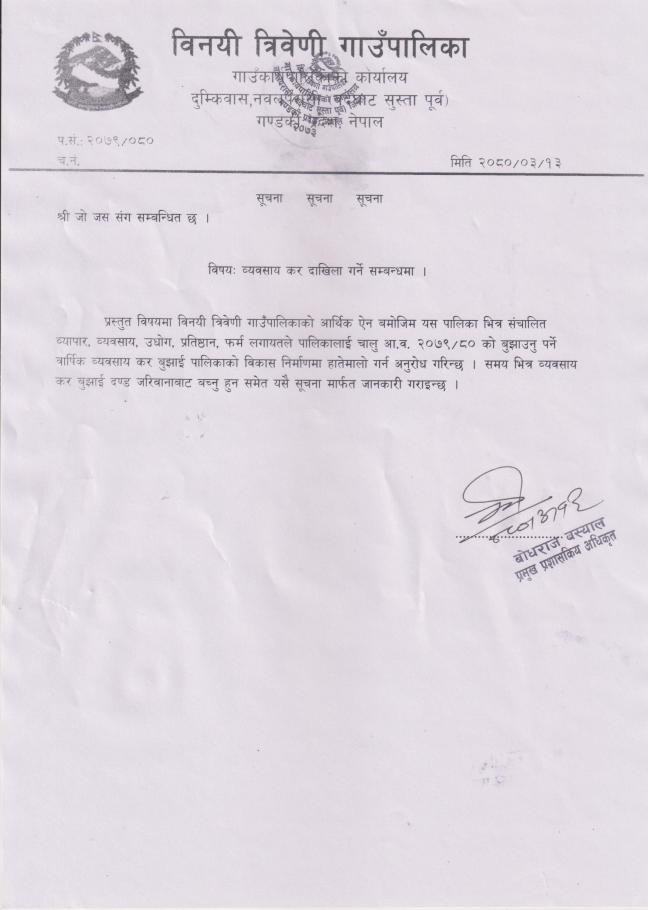 व्यवसाय कर दाखिला गर्ने सम्बन्धमा