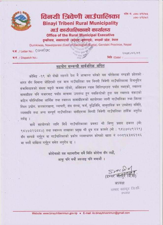 सहयोग सम्बन्धी सार्वजनिक अपिल ।