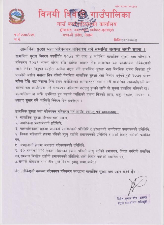 सामाजिक सुरक्षा भत्ता परिचयपत्र नविकरण गर्ने सम्बन्धी अत्यन्त जरुरी सूचना ।