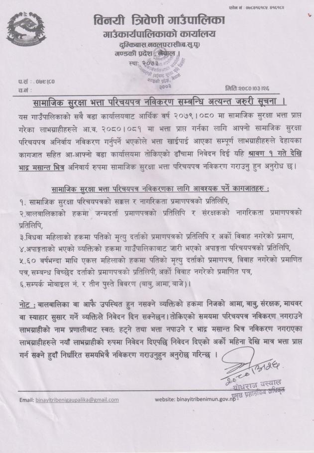 सामाजिक सुरक्षा भत्ता परिचयपत्र नविकरण सम्बन्धि अत्यन्त जरुरी सूचना