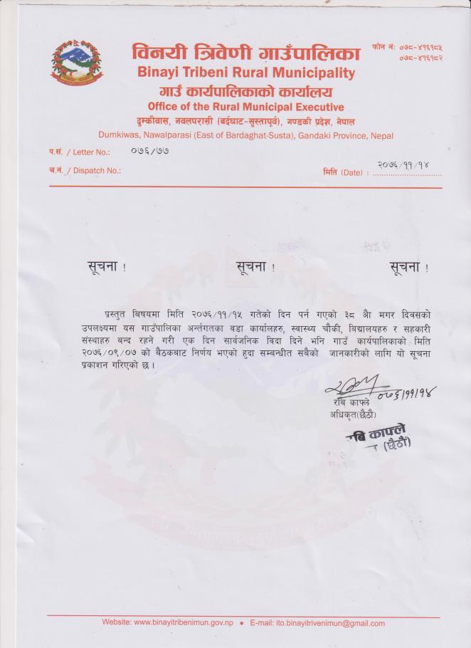 सार्वजनिक विदा सम्बन्धि सुचना !