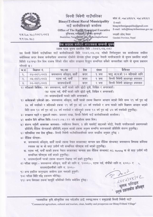 सेवा करारमा कर्मचारी आवश्यकता सम्बन्धी सूचना