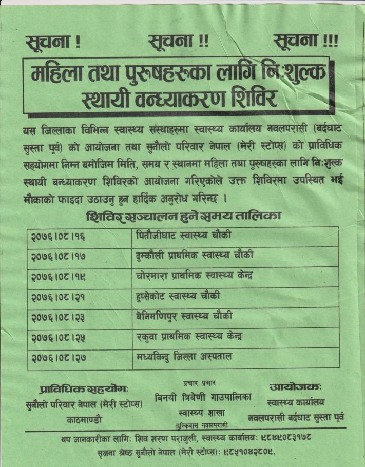 स्वास्थ्य शिविर सम्बन्धि सुचना !