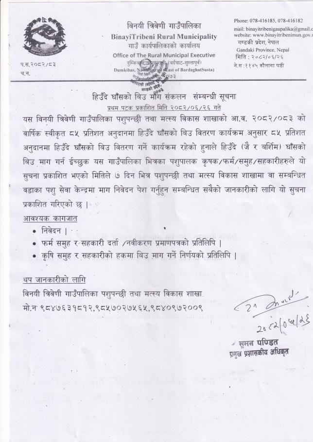हिउँदे घाँसको बिउ माग संकलन संम्बन्धी सूचना
