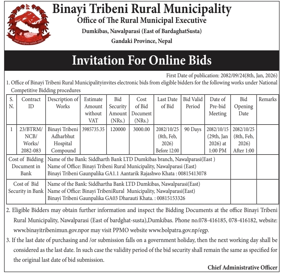 Invitation for Online Bids 23/BTRM /NCB/Works/2082-083